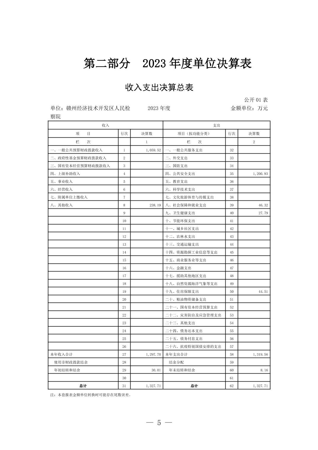 赣州经济技术开发区人民检察院2023年单位决算
